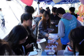 在资讯楼的广场中央,志愿者们分发预防艾滋病的知识宣传手册,热情地向同学们普及有关艾滋病的相关知识以及预防的小技巧,让同学们对艾滋病有更深层次的了解。
