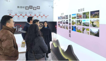 活动中,党员们首先走访了陈岙村的整体建设。在养老院,大家关切询问老人们的生活情况,了解乡村养老服务与人文关怀相结合的具体做法;随后实地考察了漂流、游泳池、冰雪体验馆等文旅项目,感受乡村生态旅游与休闲产业的融合发展。在村史展陈区,一系列新旧对比的照片真实记录了陈岙村通过旧村改造实现美丽蜕变的历程,展现了党组织带领群众推进乡村振兴的坚实足迹。