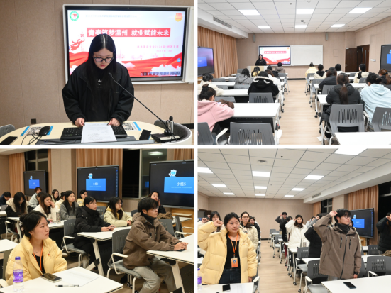 为响应“强城行动”号召,助力温州冲刺“双万”城市,打造“全省第三极”,2025年12月29日晚,国际商贸学院商务英语专业2024级1班团支部开展“青春筑梦温州,就业赋能未来”院示范性主题团日活动。国际商贸学院团总支书记周小倩、该团支部全体团员、24届各班团支书共同参与活动。