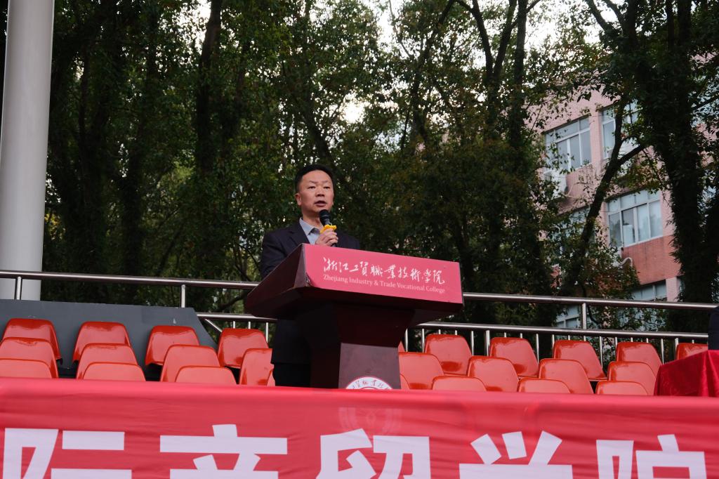 随后,国际商贸学院院长陈碎雷致辞。陈院长结合国际商贸学院的办学定位、专业特色和人才培养目标,全面分析了新学期学院的发展目标和人才培养重点,对新学期同学们的学习、实践、成长提出了四点明确要求与殷切期望。一是严守课堂规矩,筑牢知识根基。二是践行专业实践,锤炼职业素养。三是保持进取之心,主动对标提升。四是坚持运动锻炼,涵养强健体魄。他鼓励同学们追求梦想、脚踏实地,主动对标行业前沿、对标优秀学长、对标企业岗位要求,积极参与专业职业技能竞赛、挑战杯、职业生涯规划等创新创业竞赛和专业实践创新活动,不断提升综合职业能力和职业素养,在学习中锤炼本领,在实践中增长才干,在运动中强健体魄,努力成为一名有理想、有本领、有担当、有活力的高技能商贸人才。