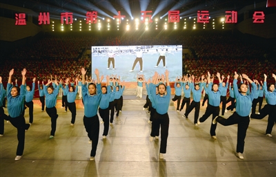 本报讯 体育的盛会,人民的节日!昨晚,我市水平最高、规模最大的综合性运动会——温州市第十五届运动会在温州体育中心体育馆举行开幕式,来自我市的高校学生、体育社团、各代表团及各界人士约4000人现场观看了开幕式。