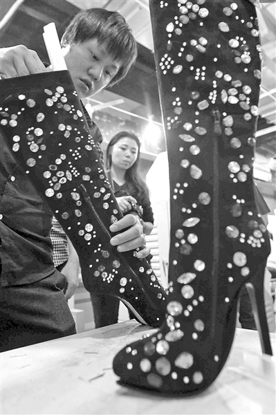 前天,“卓诗尼杯”女鞋设计技能比武暨中国鞋都女鞋基地全国邀请赛在浙江工贸职业技术学院举行,来自我市各县(市、区)及四川、广东等国内女鞋基地的30多家品牌鞋企的100多名鞋类设计师、车帮成型技工们,在6小时内将一双时尚女鞋从鞋样设计到打版、裁料、车帮、成型等制作程序,一一展现在人们面前。 陈翔 摄