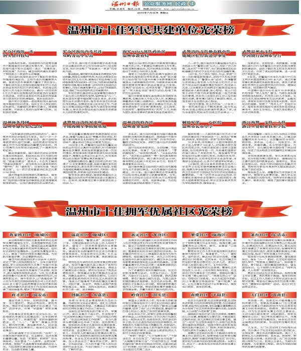温州市十佳军民共建单位光荣榜