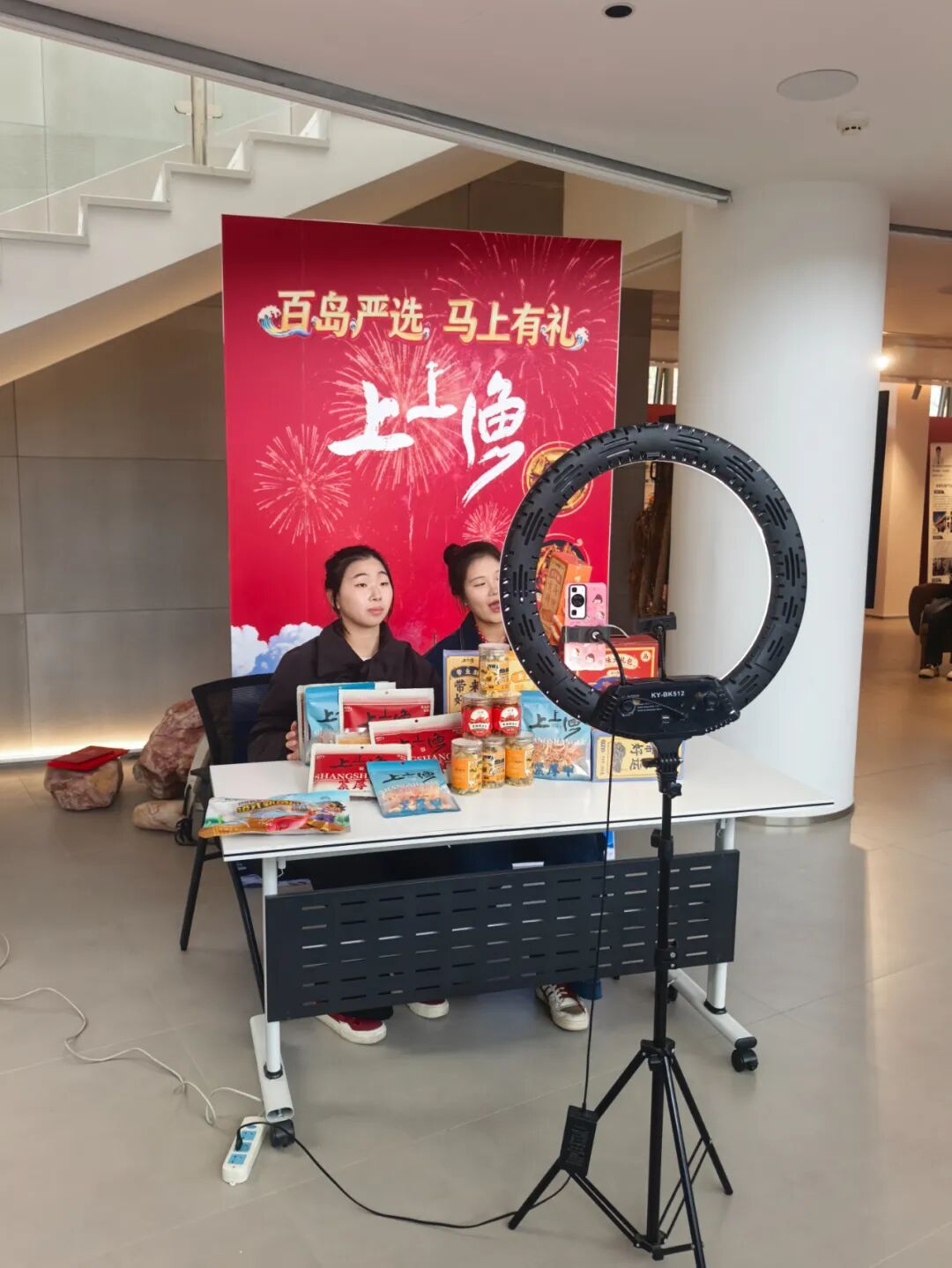 “欢迎来到我们的直播间!今天给大家推荐的是洞头特色的鱼饼和黄鱼鲞……”活动现场特别设置的学生直播间里,几位年轻主播正热情地介绍着洞头特产。