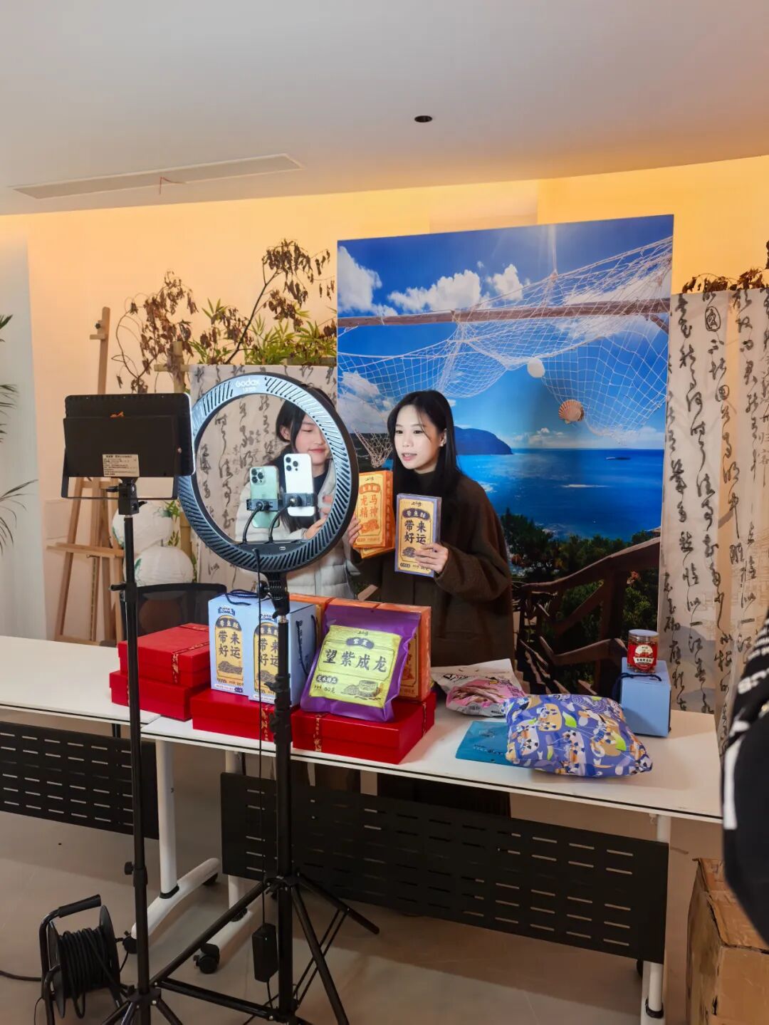镜头前,学生们熟练地讲解产品特点、分享食用方法,还不时与线上观众互动。这场特殊的直播,将课堂所学的电商知识转化为实实在在的销售实践,也让洞头优质产品通过新渠道被更多人了解。
