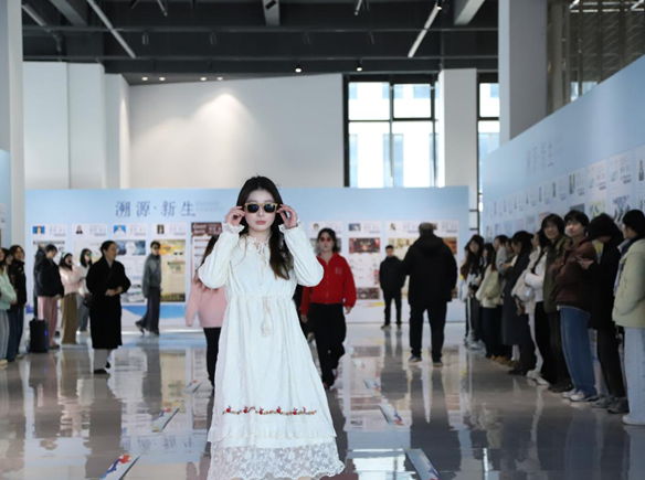 活动现场设置了充满创意的毕业设计作品模特秀。一系列兼具美学价值与实用潜力的设计作品轮番登场,每一件都凝结着年轻学子的巧思与对产业的洞察。还同步举行了学校资讯楼美育教室空间设计答辩,15组学生基于对洞头海创空间的深入调研,呈现了将专业知识转化为实际空间解决方案的专业能力,获得评委一致好评。
