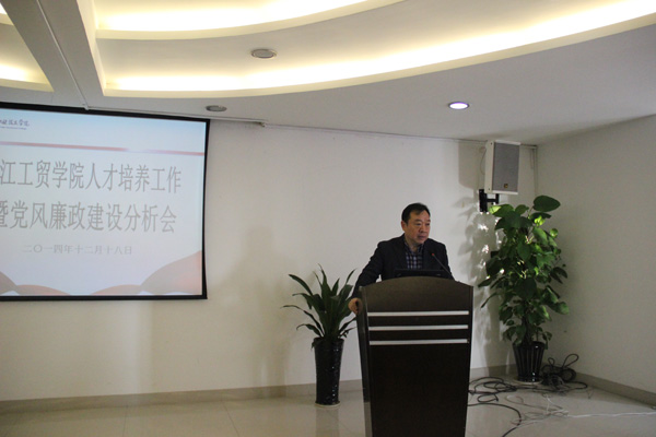 学院党委副书记、纪委书记、副院长盖庆武同志围绕当前党风廉政建设与反腐败工作形势、学院2014年党风廉政建设情况及存在问题等作了分析报告,并进一步强调了党风廉政建设和反腐败工作的重要意义,指出要继续深化党风廉政制度建设,推进纪委“三转”工作落实,防范重点领域和关键环节风险;党员干部保持警醒意识,守住底线,廉洁自律。