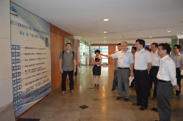 学院院长贺星岳介绍了温州市知识产权服务园的运作模式,并且重点介绍了学院在培养知识产权人才方面所承担着重要的角色。今年我市将依托学院成立“温州市知识产权学院”。知识产权学院将作为浙江工贸学院的二级学院,开设相关知识产权课程,在高职院校背景下,为企业培养、输送从事知识产权一线工作的人才,包括100名知识产权高级管理人才、1000名知识产权管理工程师和10000名知识产权一线人才。陈市长高度评价了园区的运作模式,学院在知识产权方面的探索为温州科技创新保驾护航,并对园区所取得的成绩予以了充分肯定。他呼吁全社会共同关注科技创新,大力推进科技进步与创新,奋力开创温州转型发展新局面。