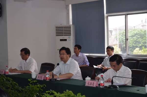 6月6日,市委副书记、市长陈金彪带队就科技创新工作开展专题调研。陈金彪和副市长孔海龙,市政府秘书长詹永枢一行来到市知识产权服务园调研,学院党委副书记、院长贺星岳教授陪同调研。