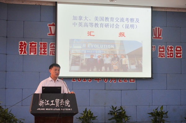 学院高职研究所所长邱开金教授代表学院赴加拿大和美国创新创业教育考察团作了考察汇报