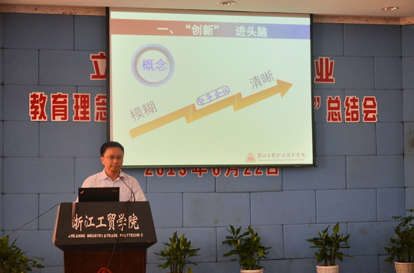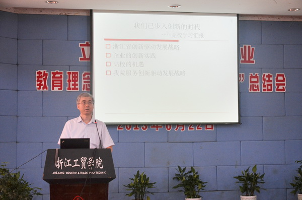 学院党委副书记、院长贺星岳教授结合在省委党校2个月的学习体会和学院实际情况,作了“我们已进入创新的时代”报告,贺院长以浙江省创新驱动发展战略为切入点,分析了当前企业创新实践的政策背景、技术支撑及人才素质需求等,阐述了因各行各业以创新创业转型升级给高校发展带来的机遇,同时结合实际阐述了我院服务型创新驱动发展战略,使与会教职工能切实可行地在自己的本职岗位,做好我院创新创业教育主题年的工作。