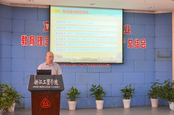 最后,学院党委书记何向荣教授作了总结讲话。何书记从宏观层面上分析了当前开展教育理念大讨论的时代背景和必要性,强调了教育理念决定学院办学指导思想的重要性;并结合学院实际和国际先进的办学理念,对与会人员进行了指导和启发。他针对创新创业教育主题年和教学质量月活动进行了指导,对经贸学院专业链对接产业链,依托特色专业,建设专业特色的举措以及我院部分老师能发挥自身优势整合教学内容、利用学院平台创新教学模式、把握各种机会助推自我成长的研究与实践给予了肯定。同时,也希望大家在总结以前的基础上,更要做好对未来工作的实施规划。