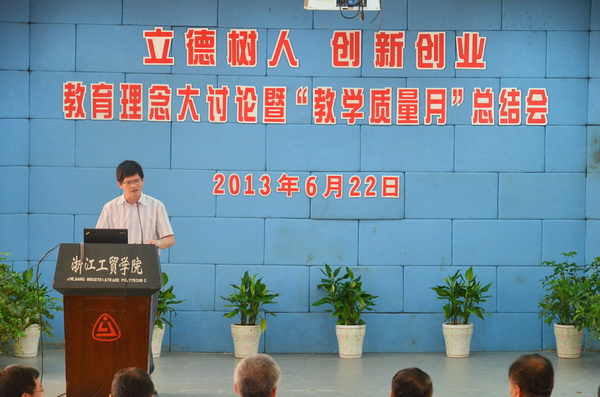 6月22日下午,主题为“立德树人 创新创业”的教育理念大讨论暨教学质量月总结会在一号教学楼阶梯教室举行。学院党政工学班子、中层干部、全体教师、科研人员以及教务处、学生处、校企合作办、科技管理中心全体人员参加了会议,会议由学院党委委员、副院长张俊平主持。
