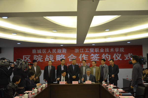 为了贯彻落实党的十八大精神,深入实施省“八八战略”和“创业富民、创新强省”总战略,加快推进温州转型发展和现代化建设,全面建设“三生融合·幸福温州”,进一步推进鹿城区经济社会转型发展,学院与鹿城区于3月15日举行战略合作签约仪式。杭钢集团公司、鹿城区及学院相关领导,双方相关对接部门负责人出席本次签约仪式。