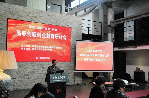 3月16日,一场由教育部高等学校创业教育指导委员主办的全国高职创新创业研讨会在我院创意园卡伊文化交流中心举行。教育部高等学校创业教育指导委员会主任、中南大学党委书记高文兵,教育部教育发展研究中心高等教育研究室主任马陆亭,浙江省教育厅政策法规处处长陈锋,全国14所高职院校校长及相关人员共60余人出席参加。