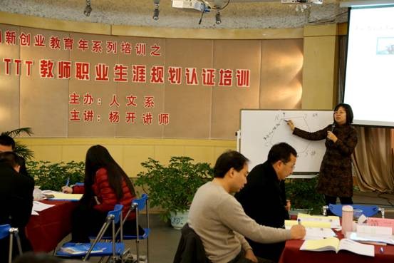 在三天的培训中,杨开老师通过系统授课和别开生面的互动游戏,以轻松、活泼的教学方式和引人深思的具体案例,对大学生职业生涯规划课程进行了详细而生动的讲解。接受培训的老师们从该课程的课程定位、授课内容、课堂组织形式等多方面均有了更新的认识和体会。