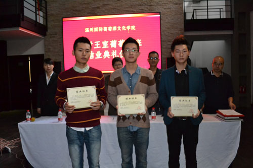 学生代表潘佳冬和钟炳炳首先做培训总结,对学院和卡伊给予他们的培训机会致以谢意。学院副院长张俊平、卡伊王室酒庄总经理林佳佳等给结业学员颁发了结业证书。典礼上还进行了卡伊王室酒庄和部分学员的就业协议书签订仪式。