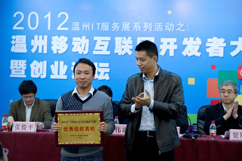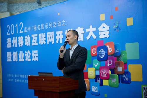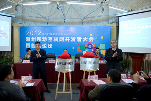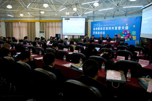 11月30日,由学院和中国移动温州分公司联合主办的“2012温州市移动互联网开发者大会暨创业论坛”在多功能厅召开。温州市经信委副主任徐竹良,学院党委副书记、院长贺星岳教授,温州团市委副书记沈醒,中国移动温州分公司总经理张伟聪出席论坛并致辞,温州市软件协会、浙江工贸国际服务外包产业园、温州高校相关院系代表、温州IT行业代表等100余人参加了论坛,论坛由我院副院长张俊平主持。