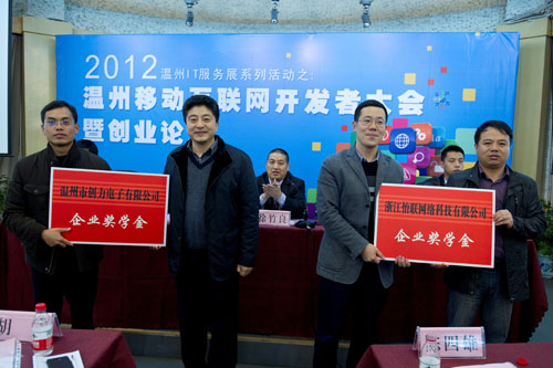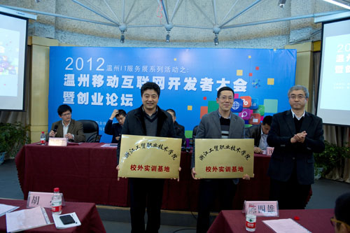 随后,举行了温州移动互联网研究所揭牌仪式,温州移动互联网开发者俱乐部成立仪式,我院校外实训基地授牌仪式、企业奖学金颁奖仪式,以及2011年“MM百万青年创业计划”优秀组织高校颁奖,中国移动——浙江工贸职业技术学院“移动MM创业孵化基地”授牌仪式。最后由中国移动通信研究院终端技术研究所副主任研究员詹建飞等5位专家分别做了移动互联网创业论坛专题演讲。