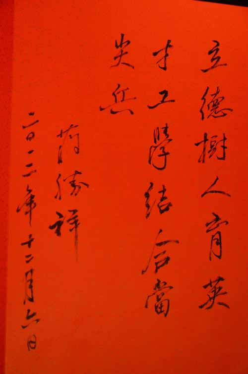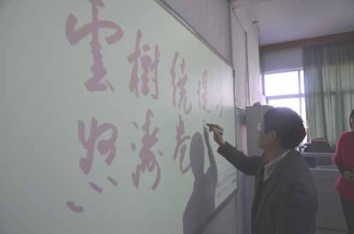 在参观过程中,蒋胜祥副厅长对我院致远工作室、3G工作室研发的教学电子屏、家用视力检查仪、物联网等科研项目表现出了浓厚的兴趣。在非遗瓯塑瓯塑保护、传承、创新方面获得蒋胜祥副厅长的高度肯定,并表示要对非遗工作予以支持。最后,蒋胜祥副厅长有感而发,题词“立德树人育英才 工学结合当尖兵”,表示对我院近年来工作的高度认可。