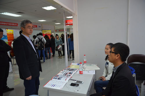 招聘会期间,我院党委副书记、院长贺星岳教授亲临现场了解企业,并与用人单位进行了亲切交谈,详细了解单位的用人需求,同时对毕业生提出了殷切期望,希望毕业生能准确定位,明确方向,积极应聘,找到自己理想的岗位。招聘会现场还精心布置了各种富有特色的展台,全方位展示了2013届毕业生优秀作品和育人成果,有创意创新作品展、创业成果展、专业技能成果展等,分院系书记、辅导员、班主任以及相关部门负责人亲临现场,现场指导毕业生应聘。