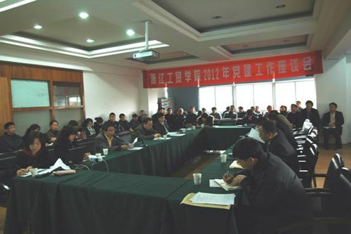 3月1日下午,我院召开2012年党建工作座谈会,学习传达温州市党代会及两会精神,部署2012年党建工作要点。学院领导班子、各党总支、直属党支部书记、中层及以上干部、党务工作部全体人员参加了此次座谈会。会议由学院党委书记、院长何向荣主持。