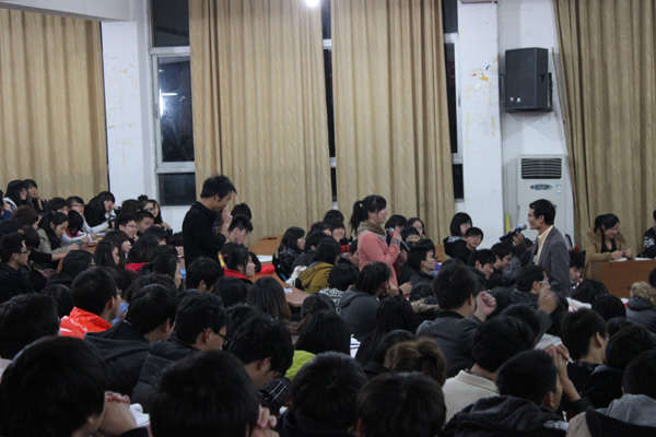 党委书记、院长何向荣教授结合学习十七届六中全会精神的体会,亲自主讲“高校校园文化引导社会文化建设”,带领在场的360多位团学干部了解和领悟校园文化和社会文化的精髓。讲座由“如何培养学生服务国家、服务人民的社会责任感,如何培养学生的创业创新能力,如何培养学生解决问题的实践能力”三大提问切入,在场的学生结合自身感受和亲身经历,踊跃地向何院长讲述了自己的见解。何院长对同学们给出的答案予以了肯定,并且对这几个问题进行了深入分析和总结。学院创建51年以来,经过几代工贸人的探索形成了具有特色和丰富的校园文化。学院坚持建设教育服务型高校理念,通过历史文化传承与发展、创业创新文化坚持与弘扬、海外先进文化引进与融合、区域文化创新与引领四各方面工作引导社会文化建设。随后,何院长肯定了我院社团文化、寝室文化和平安文化等一系列特色校园文化建设成效。最后,何院长提出了“反思人生命题、把握时代趋势”的哲学命题,启发团学干部不断思考,完善个人综合素质,发挥学生干部的优势,服务学校、奉献社会。