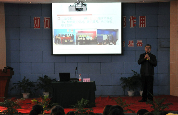 学院党委委员、副院长贺星岳向团学干部作“如何做一名优秀的团学干部”主题讲座。贺副院长具体从团学干部作用的体现、团学干部发挥作用的着力点、团学干部发挥作用应当处理好的关系、本学期工学结合情况、充分了解学院搭建的平台,积极促进学风建设等五个方面,围绕如何做一名优秀的学生干部给全体团学干部提出了殷切希望和切实可行的建议。贺副院长提出团学干部要以学会沟通、勤奋学习为着力点在平时的工作和学习中有意识的历练自己,做到学生身份和学生干部身份相统一、长效机制和阶段性工作相协调、激励手段和督促措施相结合,充分发挥学生干部在学风建设中的先锋模范作用,成为一名政治成熟、学业优秀、行为规范、主动热情的团学干部。
