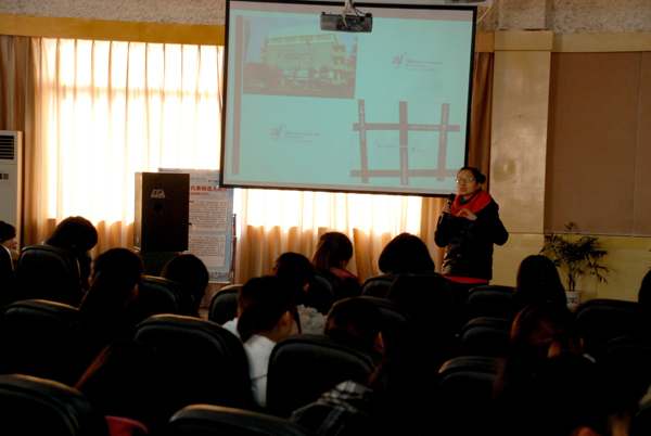 日前,法语联盟(Alliance Francaise)杭州办事处官员及教师应邀到我院与人文系应用法语专业的师生进行了交流。在为此进行的交流讲座中,法盟的人员向师生们介绍了法盟的相关情况及正在开展的培训推广活动,与师生就法语学习及应用开展了互动交流。并表示将积极与我院及人文系合作,为相关师生赴法进行学习交流等牵线搭桥,提供服务及咨询。我院人文系将就法语教学与该联盟开展多项合作。