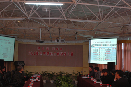 2011年我院共录取了来自全国17个省市自治区的3200名新生(其中自主招生143名),居历年之最,生源质量呈现稳中有升势头。省内普通文理科录取分比该批次省录取分数线分别高出46分和27分,处于全省同类院校前列。湖南、江西、安徽等省份录取线都接近所在省份的本科线。同时在全国就业形势逐年严峻的情况下,我院得了就业率98.88%的可喜成绩,在温州同类院校中位列第一,各项指标稳居浙江省高校前列;就业质量进一步提高。贺星岳副院长宣读了学院表彰文件,他强调招生工作要创新工作思路,做好招生工作最根本的问题就是要提高教学质量。