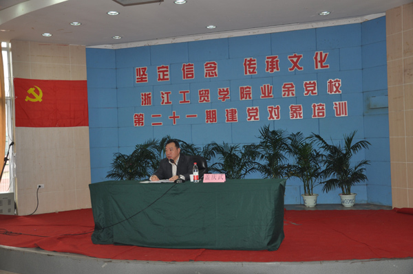 本期建党对象培训班内容丰富、形式多样,深入浅出。学院党委副书记、副院长、纪委书记盖庆武围绕《当前社会稳定形势与高校和谐校园建设》主题,通过中国发展历程阐述只有在共产党的领导下才能达到政治统一、经济繁荣、社会进步、百姓安康。他赠送十二字箴言给在座的建党对象:“勤奋好学、团结协作、克己自励”,要求在场各位做到理必求真、事必求是、言必守信、行必踏实。温州大学马克思主义学院张小燕教授围绕《建党90周年──继承党的光荣传统,弘扬党的优良作风》的主题,指出当代大学生需要继承党的光荣传统,弘扬当的优良作风。我院学生处处长王春柳主讲《十七届六中全会解读》课程。他为在座的学生分析了十七届六中全会的意义,提出文化建设的重要性。我院人文系党总支副书记徐辉以《国际形势分析──共和国战争》为主题,指出现在的和平是共和国的军人们用鲜血和年轻的躯体换来的。学院人文系两课教研室副教授郭薇主讲《共产党员的崇高信仰》的课程,通过视频和图片阐释了社会信仰的现状。