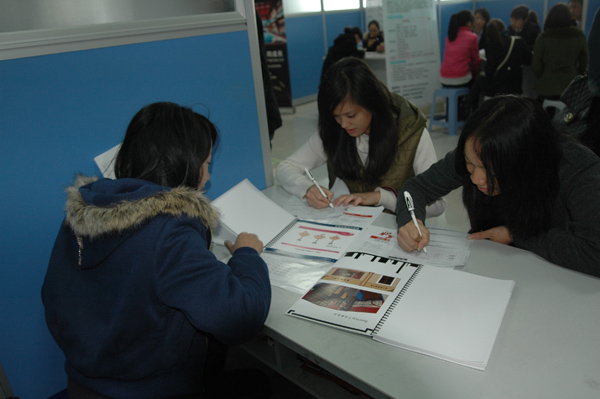 本次招聘会是我院今年举办规模最大的一场招聘会,共吸引杭州钢铁集团公司、奥康集团、报喜鸟集团、康奈集团、巨一集团、红蜻蜓、法派集团、特福隆集团、浙江雪歌服饰等省内外340多家知名企业前来参会。招聘会的举办为我院2888名2012届毕业生搭建了一个有效的择业平台。据统计,招聘会共提供需求岗位12000多个,毕业生与就业岗位比达到1:4。参会企业涉及市场营销、经营管理、广告、技工、人事行政、财务、计算机、文职人员、设计、机电、模具、电子信息等专业门类,招聘范围涵盖我院所有专业。