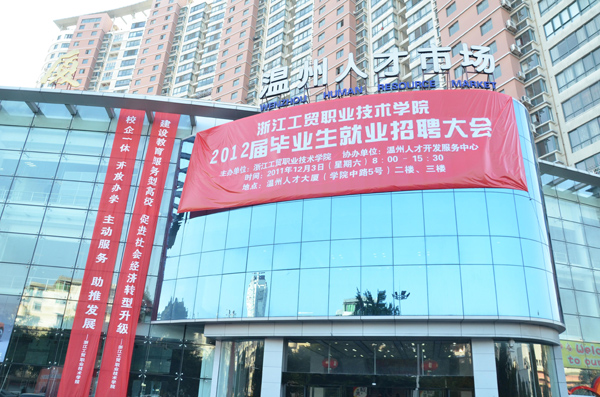 12月3日,学院2012届毕业生大型招聘会在温州人才市场二、三楼隆重举行。学院党委书记、院长何向荣、副院长贺星岳等领导到场巡视指导,本场招聘会标志着我院2012届毕业生就业工作进入全面推进阶段。