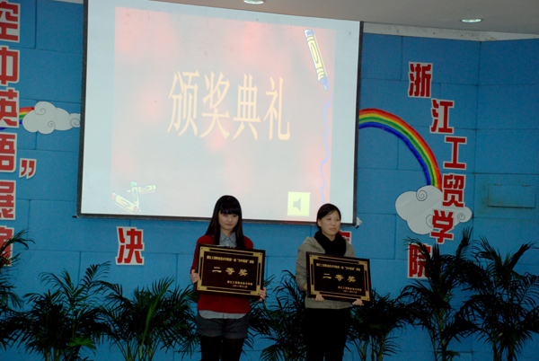 据介绍,“空中英语”是目前国内唯一一家集广播、电视、网络、音像、并融合教学于一体的全方位多媒体英语时尚教学平台。我院今年以来与“空中英语”进行了广泛合作,引入该产品的网络平台,为广大师生进行英语教学及学习提供服务。第一届大学生“空中英语”展演活动经历了海选报名、初赛及本次决赛阶段。决赛中,经过“英语短剧表演”和“空中英语平台”推介两个环节的激烈角逐及评委们一致评定,以下团体和个人分别获得奖项: