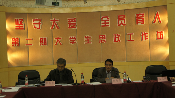 2011年12月12日下午,我院举行主题为“坚守大爱,全员育人”的第二期大学生思政工作坊交流会。学院党委书记、院长何向荣,党委委员、副院长贺星岳以及相关部门负责人、各分院(系)书记、辅导员、全体班主任、“两课”教师代表、教学督导代表等参加了本次思政交流会。
