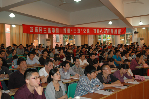 10月8日下午,学院组织开展了以 “增强党性修养,发挥先锋作用,创建学习型党组织”为主题的党课活动。学院党委书记、院长何向荣以学习贯彻胡锦涛书记“七一”重要讲话精神为主要内容,结合学院任务目标和发展趋势,围绕党组织如何加强党员队伍建设、增强党性修养、发挥先锋作用进行了深刻地阐述。何书记要求:一,全体师生党员要继续学习和领会“讲话”精神,进一步增强党性观念,弘扬党的优良传统和作风,加强党性锻炼,加强作风养成,经受住“四个考验”,防止“四个危险”。二,学院各级党组织要结合实际,继续深入开展学习型党组织创建工作,使创建学习型党组织与构建学习实践型个人、学习实践型高校紧密结合起来,创新基层党支部生活会、学习会、主题党日等教育形式,使党员学习教育活动更有影响力,进一步增强党组织的凝聚力、战斗力。三,学院各级党组织要以开好学院第二次党代会为契机,统一思想,发扬民主集中制,引领正气,弘扬主旋律,坚持理论联系实际,紧紧围绕学院“十二五”发展规划,明确新形势下学院发展战略和主要任务,不断推进学院整体工作,从而实现服务人的全面发展,服务社会可持续发展。