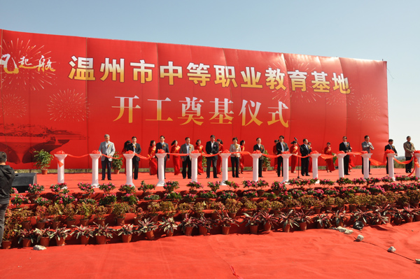 10月26日早上10点,温州市中等职业教育基地开工暨奠基仪式在温州经济技术开发区举行。副省长、市委书记陈德荣出席仪式并宣布开工奠基令,市委副书记、代市长陈金彪致辞。市人大常委会主任陈笑华,市政协主席包哲东,市委常委、秘书长葛益平出席仪式,我院副院长贺星岳参加了仪式并作为贵宾为中职基地开工剪彩和奠基培土,我院100多名学生代表也参加了此次奠基典礼。仪式由副市长仇杨均主持。