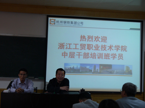 杭州钢铁集团之行——学习杭钢文化精神体验钢铁如何炼成。下午,杭钢集团公司党委副书记任海杭从“欢迎、感谢、珍惜”三方面为本期参训学员做动员。要求参训学员要珍惜学习机会,加强理论学习、管理知识学习和专业知识学习;要努力创新,做善于思考、勇于开拓的干部;要进一步加强自身修养,加强工作作风和学风建设,深入学习,在实践中不断提高自己的理论素质和工作能力,为学院做出积极贡献。根据培训计划,杭钢党校副校长张雪根作企业文化建设专题讲座,资产经营管理部钱一峰科长就杭钢“十二五”规划和股权投资管理办法进行解析。特别是企业文化建设中的事例、典故,让在场的干部深刻感悟到“以钢铁意志做人、建业、报国”的杭钢精神。