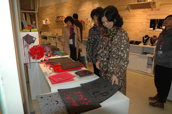 省党代表一行在我院党委委员、副院长贺星岳等人的陪同下先后重点考察了我院设在创意园的传统工艺美术研究所、工业设计工作室、温州名购网等六大设计创意类工作室及卡伊文化交流中心、7号艺术中心、思珀整合传播等园区入驻的文化创意机构。省党代表听取我院及创意园区文化建设情况汇报。党代表们认为,温州文化底蕴深厚,近年来在市委市政府的高度重视下,扎实推进文化大市建设,大力发展文化事业和产业,举措有力,成效显著。接下来,希望以深入学习贯彻六中全会精神为契机,进一步增强文化自觉和文化自信,把温州打造成文化强市,为我省文化大发展大繁荣作出更大贡献。