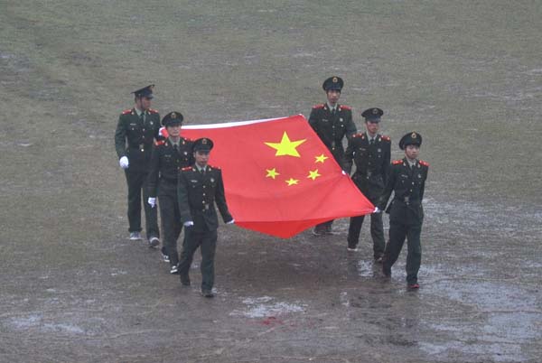 红旗在雨中飘舞
