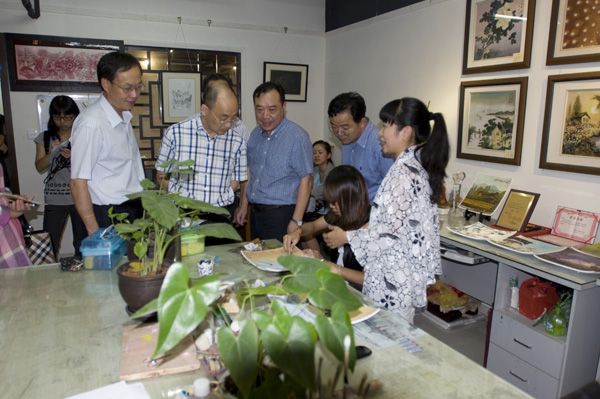 9月27日下午,嘉兴市委常委、宣传部长武亮靓率领嘉兴市宣传文化系统考察团一行26人在温州市委常委、宣传部长曹国旗等领导陪同下考察了我院浙江创意园。武亮靓一行重点考察了我院设在创意园的传统工艺美术研究所、工业设计工作室、温州名购网等六大设计创意类工作室及卡伊文化交流中心、7号艺术中心、思珀整合传播等园区入驻的文化创意机构。学院党委副书记、副院长盖庆武陪同考察并介绍了我院文化创意产业建设情况。武亮靓部长高度评价了我院积极服务社会,依托高校资源发展文化创意产业,为嘉兴市高校人才培养实践平台建设,服务地方转型升级,文化产业发展树立了典型范本。他表示,今后两市将加大交流学习,进一步推动文化产业发展。