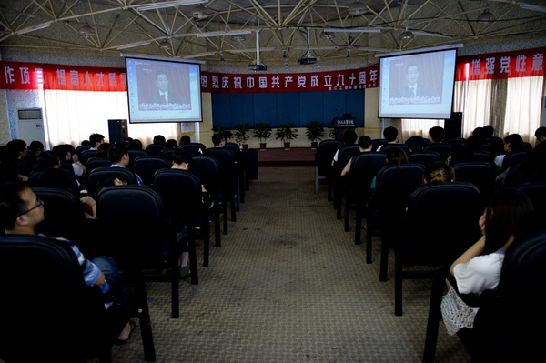 7月1日上午,庆祝中国共产党成立九十周年大会在北京人民大会堂隆重召开。学院120多名师生党员怀着激动的心情在学院一号教学楼二楼多功能厅收看了胡锦涛总书记在庆祝建党90周年大会重要讲话盛况。