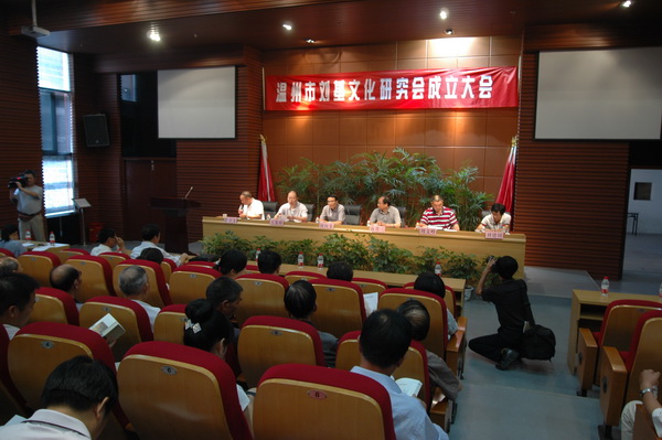 7月8日上午,温州市刘基文化研究会成立大会暨第一届一次会员代表大会在我院六号教学楼学术报告厅举行。学院党委书记、院长何向荣教授、市社科联蒋省三副主席、市民政局王集椿主任、文成县人大周文峰副主任、温州市历史学会刘建国副会长及刘基文化研究领域专家学者、刘基后裔近80名会员代表参加了会议。会议由学院刘基文化研究所陈守文所长主持。