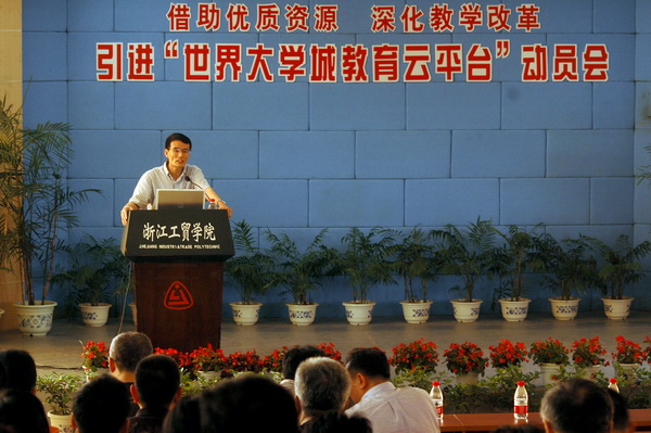 为全面推进信息化进程,构建具有工贸特色的数字校园,优化管理模式,借助先进网络教育云平台和广泛的国内外优质资源,构建网络教学模式,深化我院教育教学改革,提高人才培养质量,5月25日,我院召开引进“世界大学城教育云平台”动员会。学院全体教职工参加了会议。