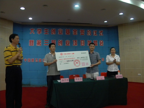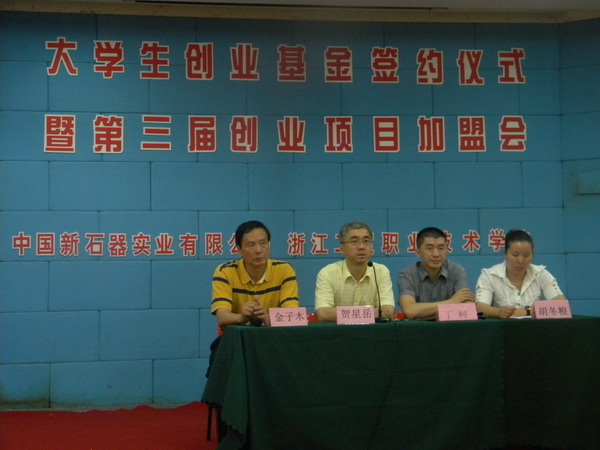 6月22日晚上,主题为“智慧创业,乐享人生”的新石器大学生创业基金签约仪式暨浙江工贸学院第三届创业加盟会在阶梯教室举行。院党委委员、副院长贺星岳、创业学院院长金子木、中国新石器实业有限公司董事长丁柯先生和总经理胡冬粮女士,创业学院全体学员以及有志于创业的学子代表参加了本次活动。