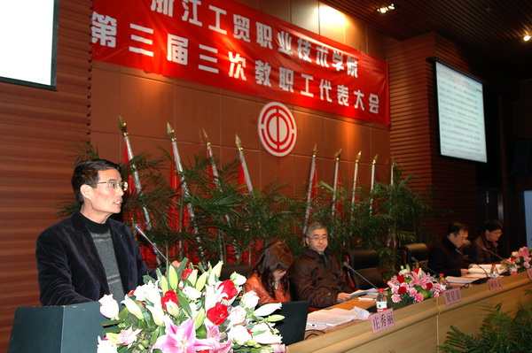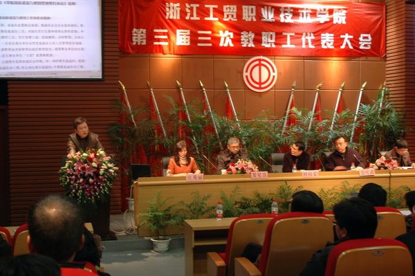 浙江工贸职业技术学院第三届三次教职工代表大会,于2011年2月18日下午至19日上午在学院6号楼学术报告厅隆重召开,会期一天。学院领导班子成员、全体教代会代表、列席代表等参加了会议。