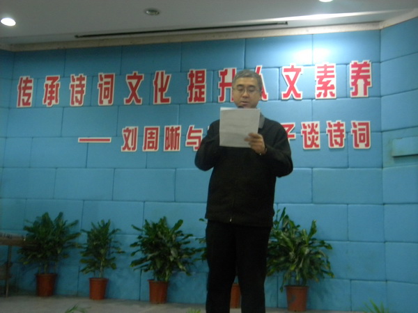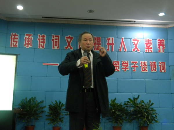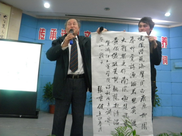 2011年2月23日晚,传统文化教育进校园系列活动第二场在我院阶梯教室如期举行,本次活动主题为“传承诗词文化,提升人文素养”。 温州市诗词学会会长刘周晰老师、副秘书长叶良中老师以及中国红学会会员、中国哲学史专家张乘健老师为同学们带来了精彩的诗词文化介绍和交流。