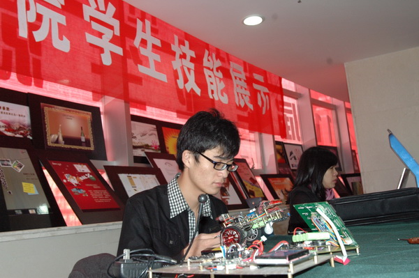 现场展示学生获奖作品及情况的走秀吸引了众多眼球