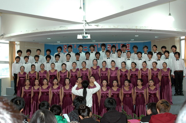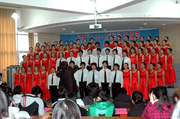 为纪念“一二.九”运动75周年,我院于12月12日下午举行了主题为“歌颂祖国,畅想未来”的大型合唱比赛,本次大赛也是我院今年学院文化艺术节的一项重要活动。来自学院各院(系、部)的9支队伍参加比赛,温州市合唱艺术专家池方华、王瑞方及我院的马兰娣、徐辉、杨秀云等老师担任评委,全院各班学生代表都积极前来观看此次比赛。