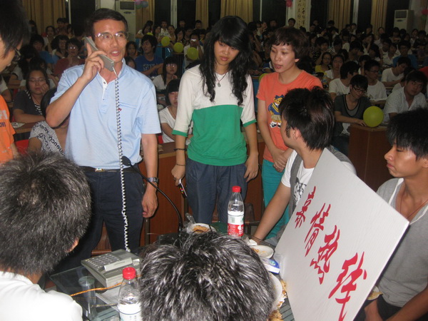 一首声情并茂的诗歌朗诵《春江花月夜》将同学们带入了中秋节的美好意境;而我院学生的原创诗歌作品《温州的月》在表达学子对故乡亲人浓浓的思念之情的同时也告诉故乡的亲人他们在温州生活的美好;小品《烤羊肉串》教育学生做人、做事都要以诚信为本。何院长为在场的同学送上学院为他们准备的精美月饼,并一起品尝,同时祝福同学们中秋快乐,希望大家在工贸的大学生生活充实而有意义,并与大家一起表演手语《感恩的心》,在温馨的歌声中,在场的同学都为自己的家人写了一封家书,学院也将统一为同学们邮寄家书。在为同学们开通的亲情热线中,何院长与学生家长通过电话亲切交谈。我院师生开发的3G手机平台也为学生提供免费了的国内长途电话服务。